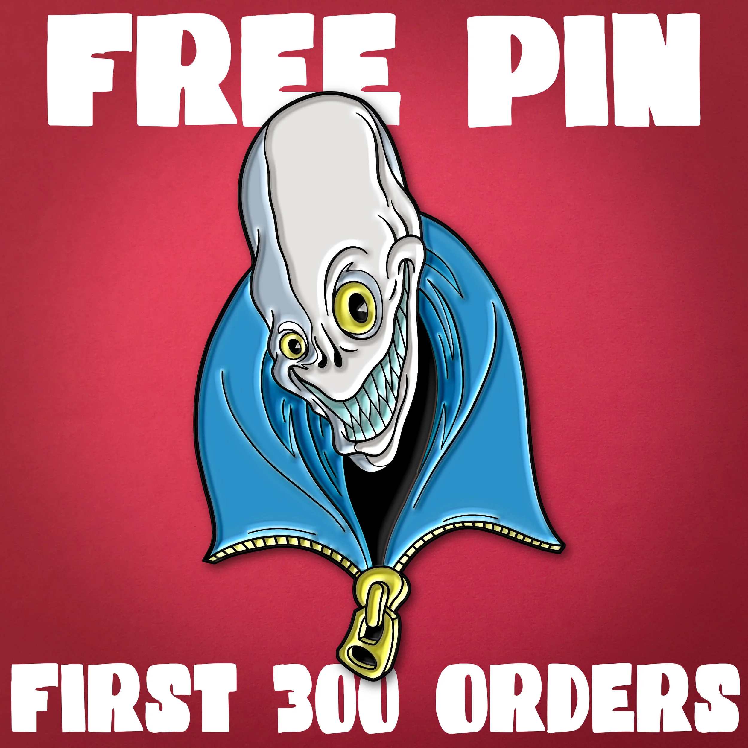 Yes, that is correct. If you are one of the FIRST 300 supporters to purchase ANYTHING on my store at alexpardee.com starting on Friday, Nov 24 at 12:00AM EST (9PM PST Thursday night) and you will get this exclusive limited edition “MR. BLACK” 1.5” Soft Enamel Pin FREE!